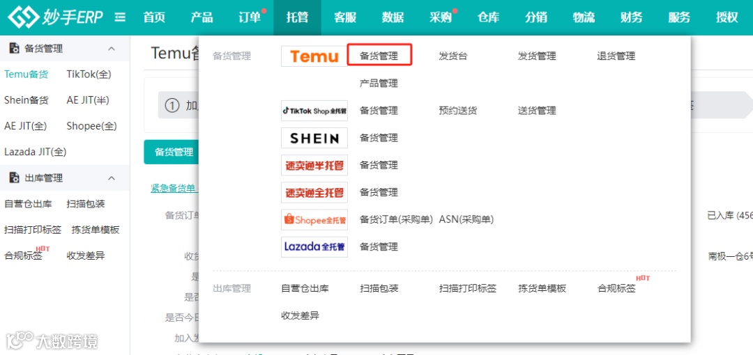 除了TEMU全托管,妙手ERP也已上线TikTok Shop全托管、AliExpress速卖通半托管/全托管、SHEIN全托管、Lazada JIT全托管、Shopee全托管等平台备货功能。