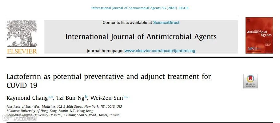 关于东西方医学研究所发表在《国际抗菌药物杂志》上的文献《乳铁蛋白作为 COVID-19 的潜在预防和辅助治疗》解读。