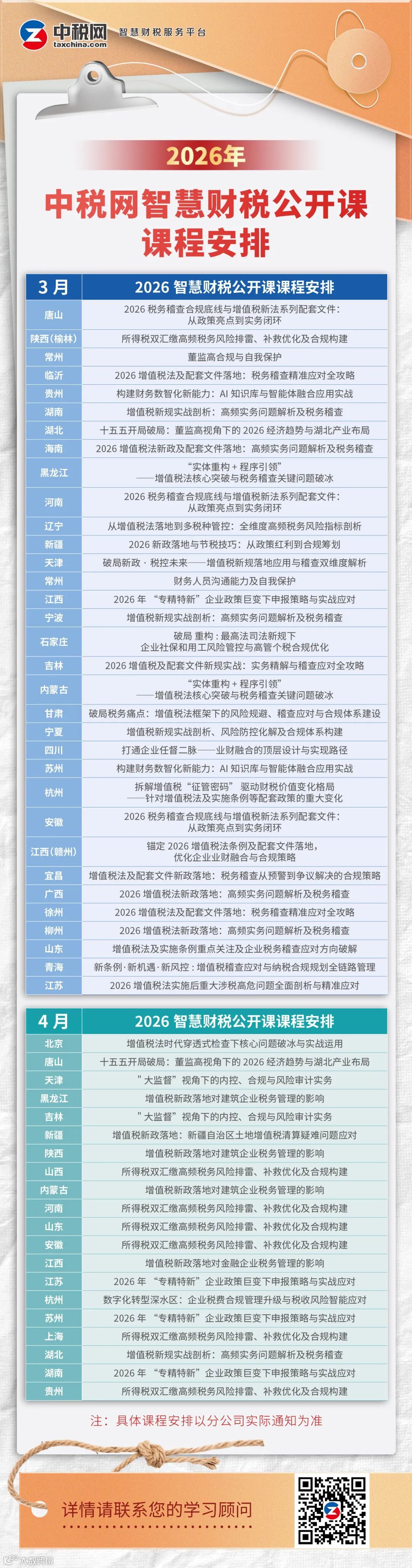 2026年3月、4月中税网智慧财税公开课课程安排~