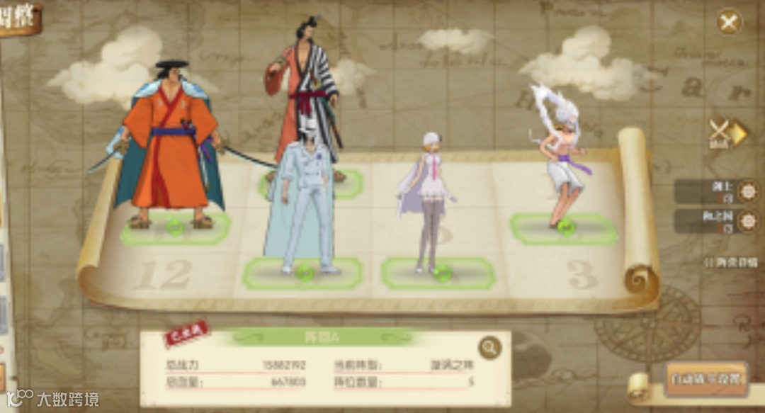 这里另外补充:锦卫门和御田一起上场时全体100%增速,锦卫门自己290%的速度(和小菊一档)。没有御田则是全体50加速,锦卫门自己290%加速。