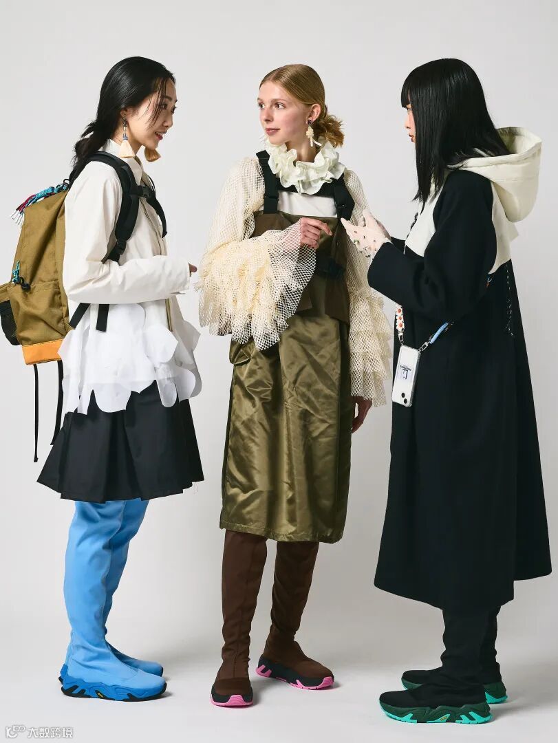 他们将传统制作技艺和现代的设计理念融合在一起,非常具有代表性的设计元素是使用混合材质、结构和松紧带、多层叠穿、剪裁、线条设计等,呈现出非常具有未来感的风格。