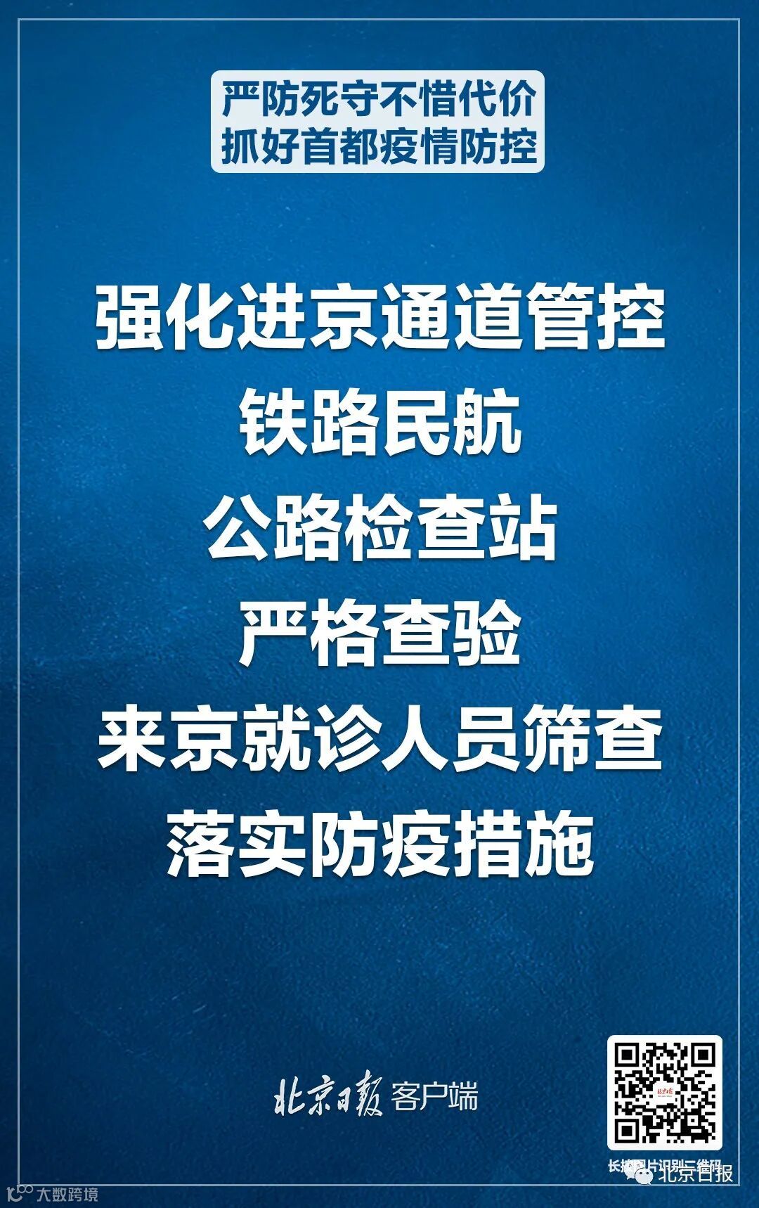 北京是全国疫情防控的重中之重,必须始终保持高度警惕,坚持从严从紧防控策略,毫不松劲绝不手软抓好各项防控工作。为进一步加严加密首都安全防线,即日起首都严格进京管理联防联控协调机制将采取下列有关措施: