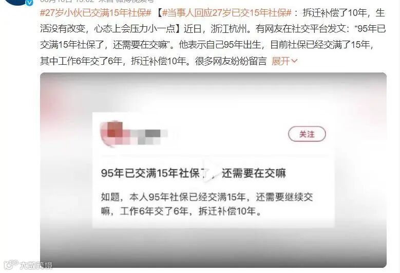 近期,27岁小伙已交满15年社保上了热搜,大家纷纷讨论。