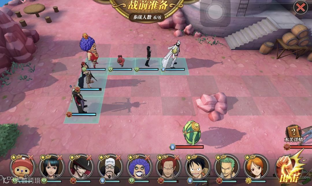 通关角色推荐:41级红发+28级伊娃科夫+36级战国+40级米霍克+25级罗宾+45级乔巴