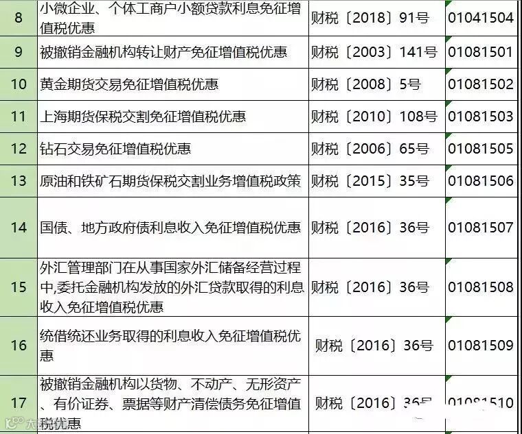 3、与小微企业相关:这是大家最耳熟能详的优惠政策,一共9项,不过这九项可以视同为一项,只不过是因为不同阶段,不同的文件规定产生减免代码不一致而已。