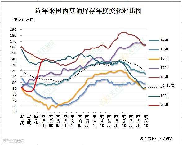 截至3月6日,国内豆油商业库存总量139.955万吨,较上周的134.42万吨增5.535万吨,增幅为4.11%,较上个月同期87.2万吨增52.755万吨,增幅为60.5%,较去年同期的135万吨增4.955万吨,增幅3.47%,五年同期均值117.956万吨。