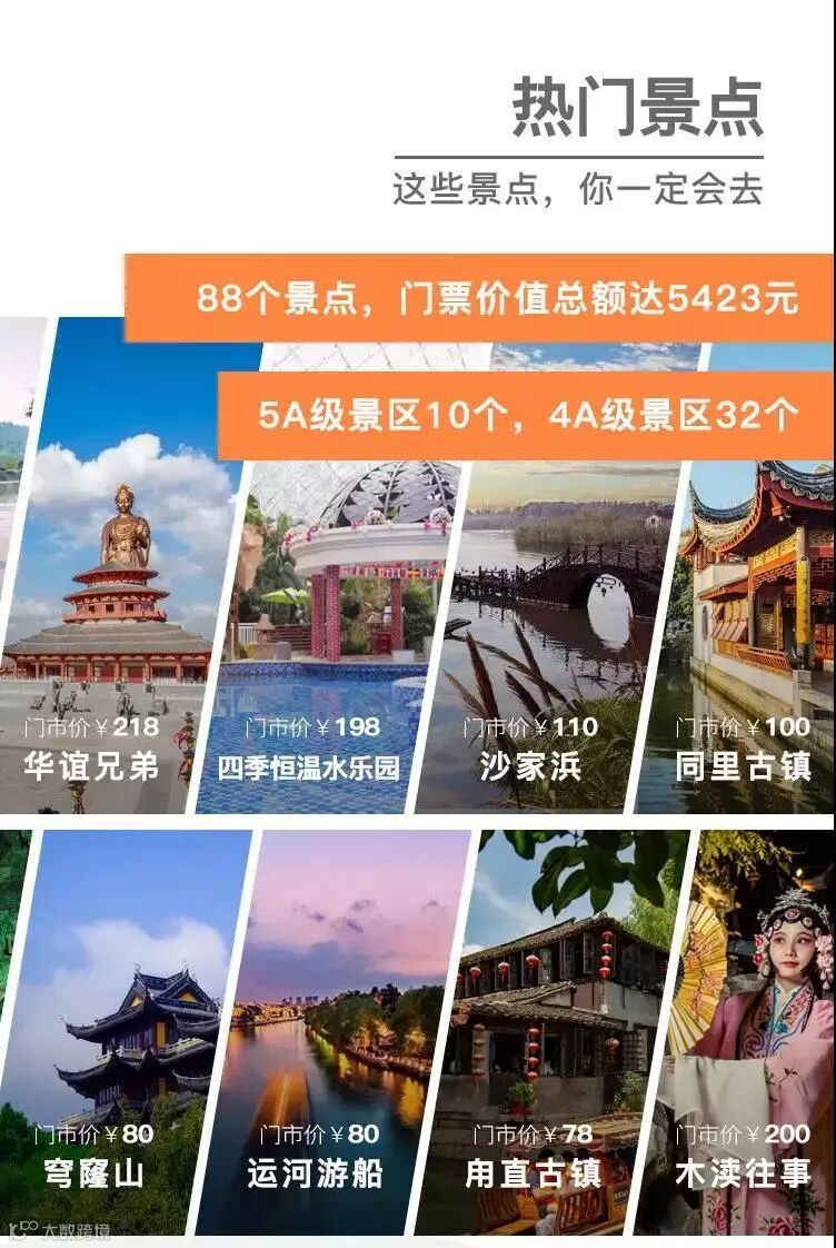 A套餐包含穹窿山、同里古镇、陆巷古村、东山雕花楼、虞山、尚湖、沙家浜、盘门、寒山寺、阳山温泉等旅游景区。套餐内各大景区覆盖了苏州、常熟、昆山、太仓、张家港、 无锡、宜兴、常州等地,共80处景点。