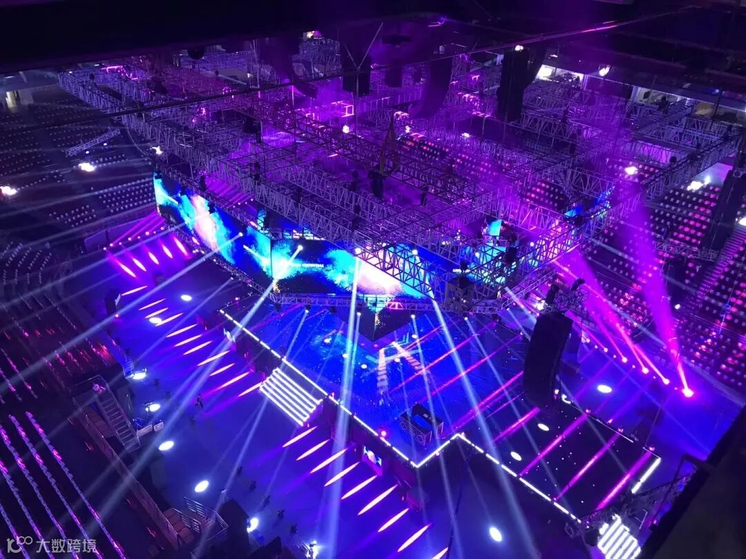 本次年会在舞台在场馆建设设计上谓是用尽心意。为了呈现最好的舞台效果,策划团队祭出了“大杀器”——四面环绕舞台,动用了超过1500m ²LED屏幕,打造出了声光覆盖、全场无死角的“沉浸式”观看环境;无论是“山顶、山腰和山脚下”的朋友,都能清晰地观看年会视频和享受特效。这些配置不仅带给观众更好的视觉和听觉体验,也保证了在年会中所有成员都能接收到年会公司想要传达的信息。