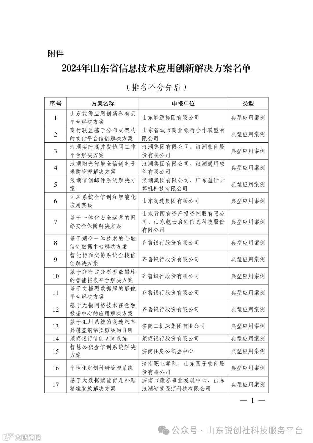 关于公布2024年山东省信息技术应用创新解决方案名单的通知