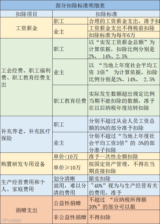 个体户特殊的税前扣除标准,我们也给你们准备好了,具体如下: