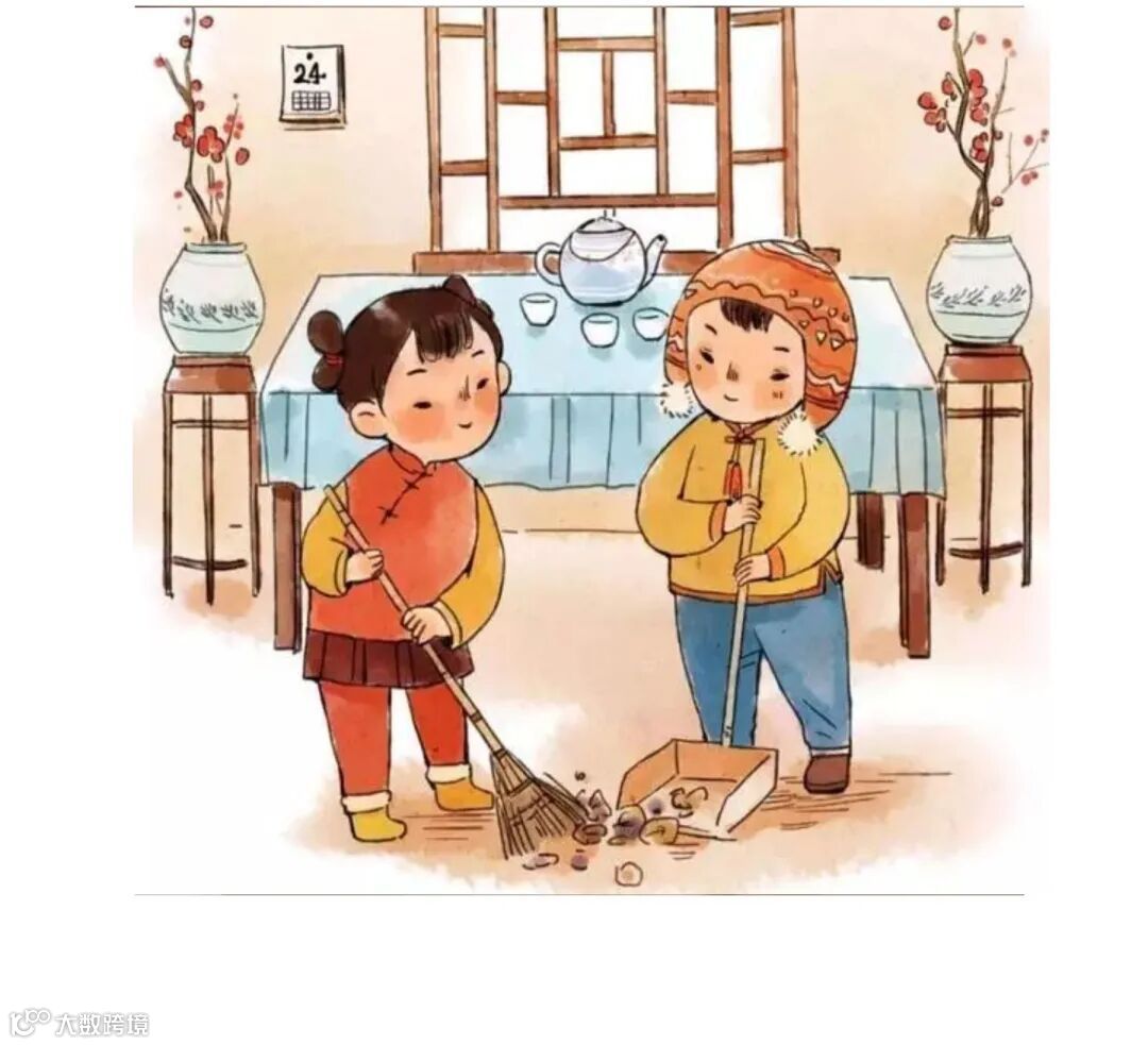 民谚称“腊月二十四,掸尘扫房子”。“扫尘”就是年终大扫除,北方称“扫房”,南方叫“掸尘”。