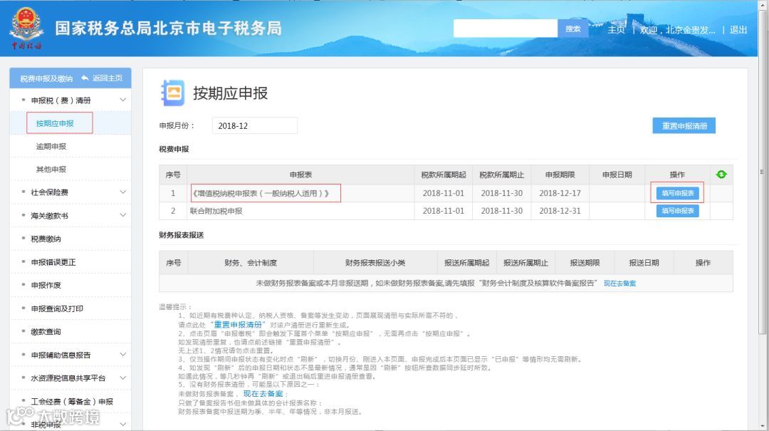 一般纳税人申报