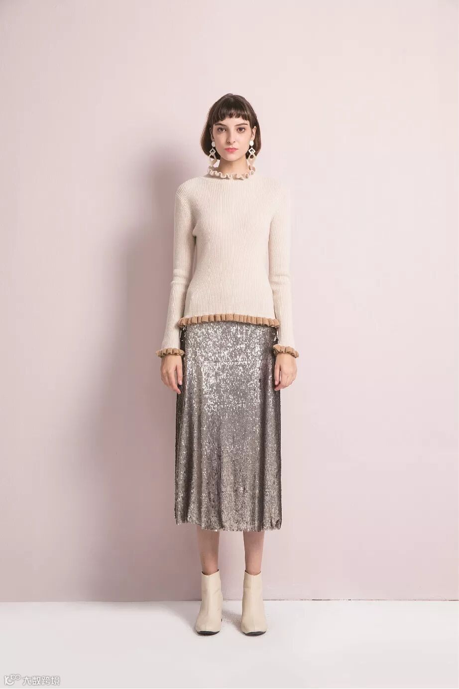 粉色系聚焦在清爽的色系中,使整个粉色系介于冷暖中间。在与柔软毛衫碰撞下,产生一种协调的对比。使整个色系透露着清晰明朗的氛围