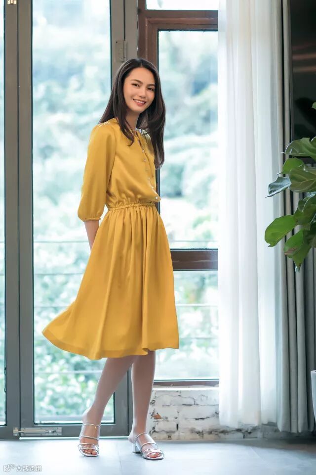 穿着一款飘逸的连衣裙,