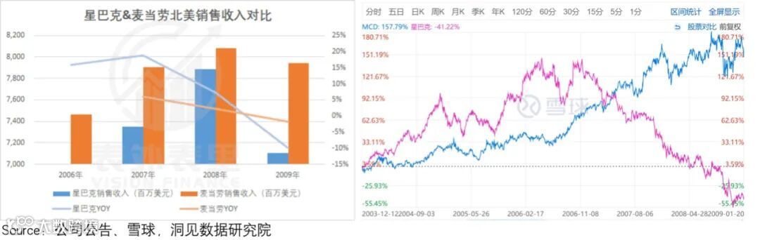 研究过行业同类型标的后,我们发现,星巴克在2008年就有类似的情况。