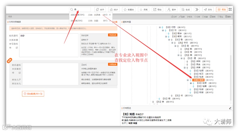 大家好!今天小编为大家介绍一下大谱师中的 查找定位 功能。选中搜索框,填写需要查找的人的姓名(模糊查询)