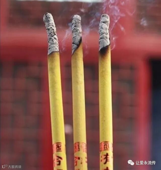 点燃这三根香即意味着对欲念的摒弃与心灵上的解脱。