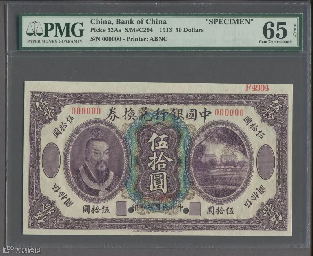 民国二年中国银行兑换券伍拾圆票样