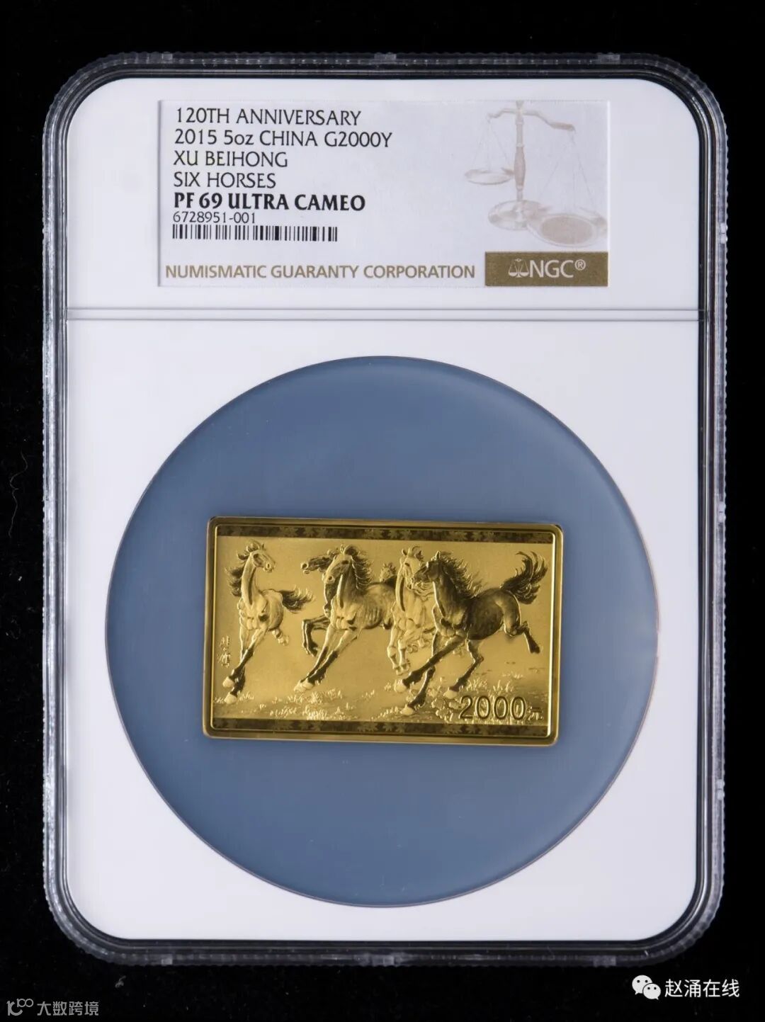 2015年中国近代国画大师徐悲鸿-六骏图5盎司长方形精制金币
