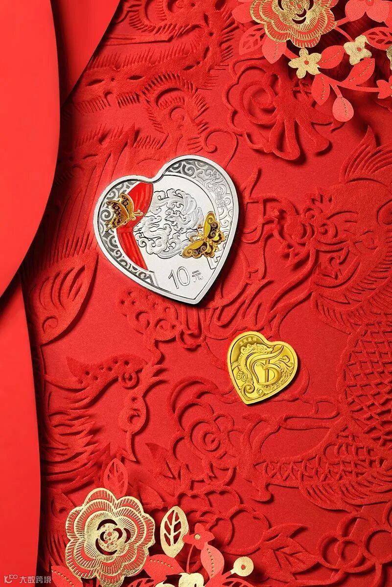 金币上龙凤起舞,围绕成代表爱情的心形,又像一枚音符,演奏出对美好爱情的向往。
