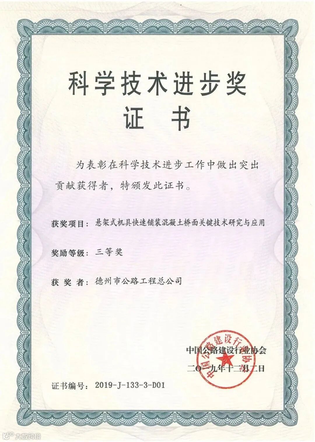 德达交建集团坚定科技创新强企战略,不断加大科研投入,持续强化科技创新能力,取得了显著的成绩。截至目前,公司获批“国家级高新技术企业”和“山东省级企业技术中心”称号;已获批3项国家级工法,53项省(部)级工法;已获批65项国家专利,其中发明专利24项;2项行业标准已颁布实施;8项技术获得中国公路建设行业协会科技成果奖;5项技术获得中国公路建设行业协会科学技术进步奖;2项国家产学研促进奖优秀奖;8项技术获得山东省建筑业协会优秀质量成果奖;1项技术获德州市科学技术奖。并作为德州市唯一一家国有企业,入选山东省科改行动。