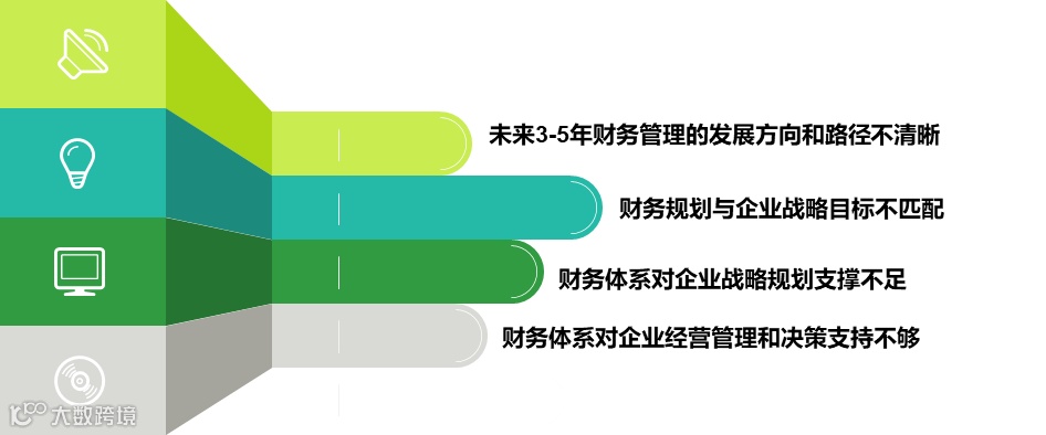 财务体系对管理和决策支持不够:财务战略中缺少对财务服务能力提升的切实可落地的规划,不能有效指导财务体系优化升级工作,对日常经营管理和管理决策支持有限;