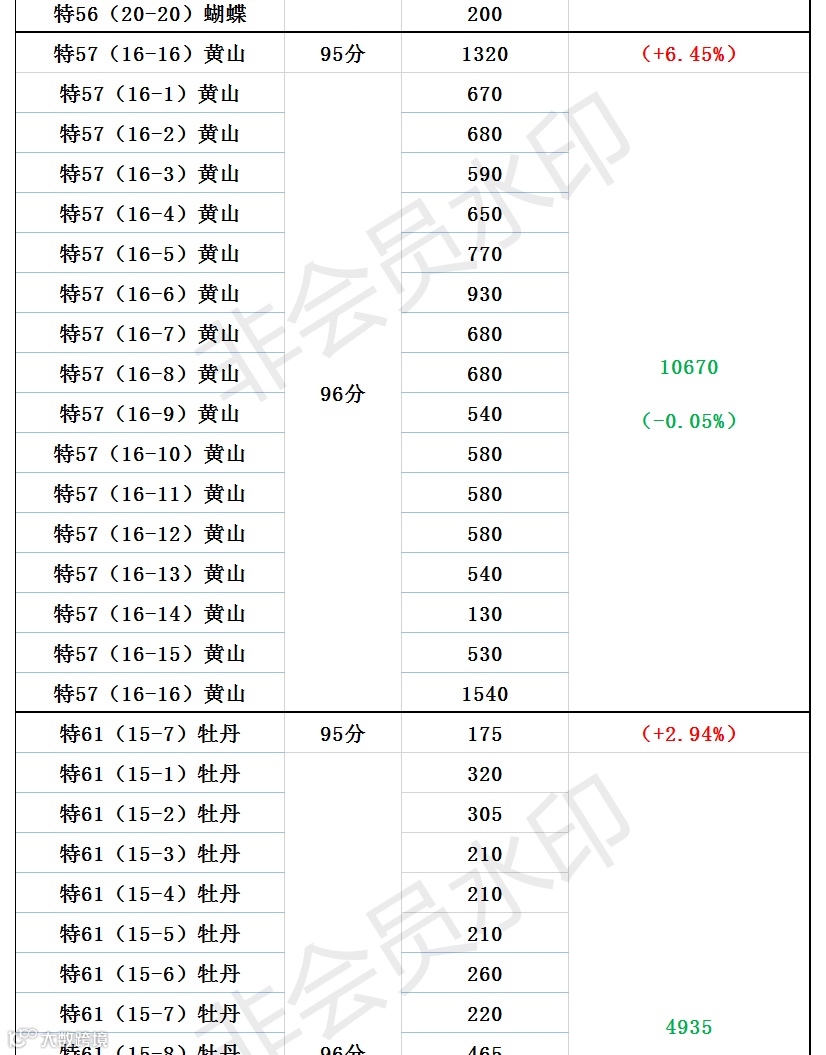 上周精品邮票共成交331件,整体涨跌分布较为平均。纪特票板块中,全套纪94梅兰芳(源泰95)毫无悬念拿下成交榜单头名,以20570元成交;特44菊花(源泰95)和特57黄山(源泰96)虽略有下跌,但仍旧以15670元和10670元成交。此外,纪97古巴和纪109遵义成交也表现不俗。