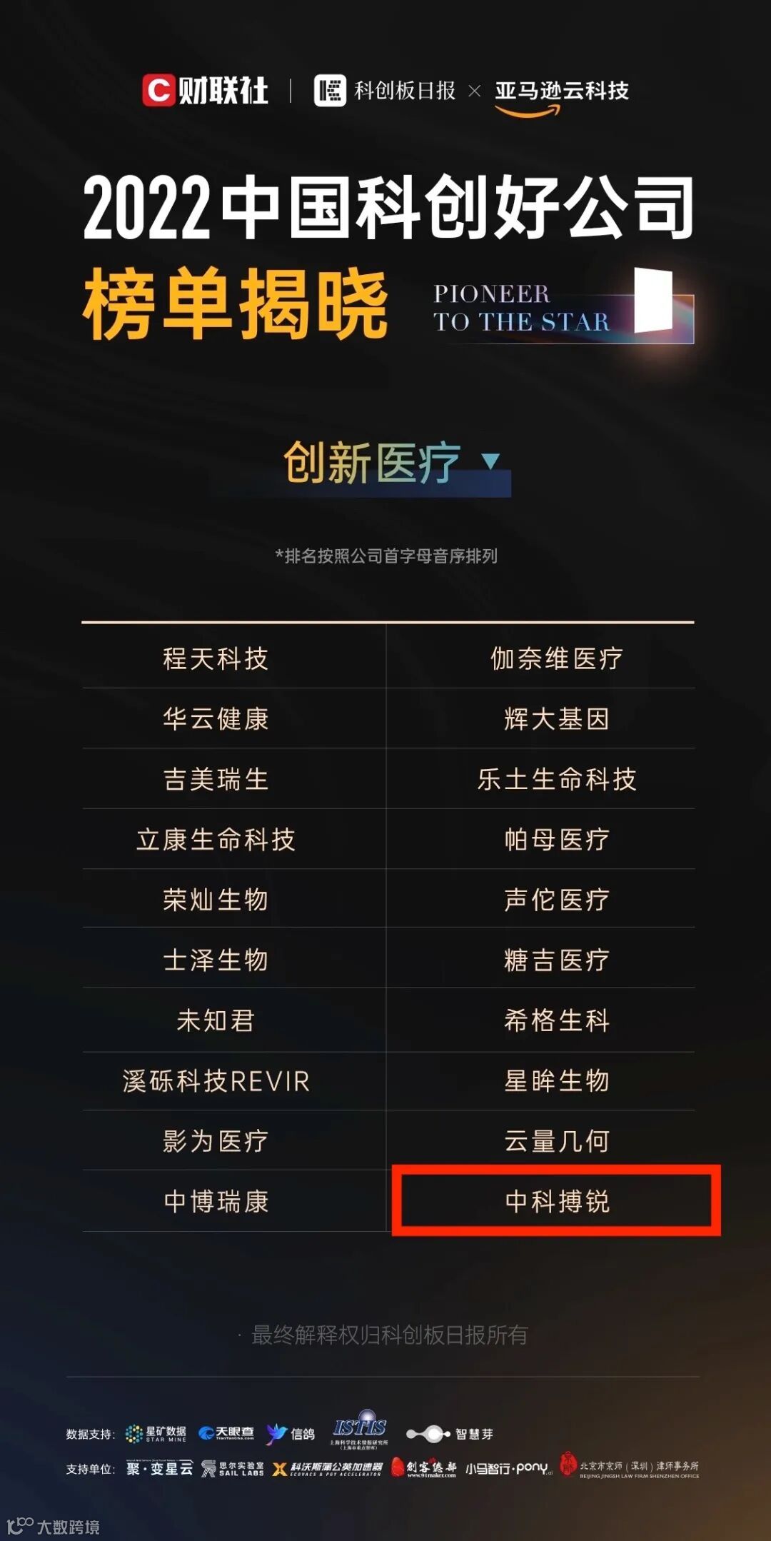 12月30日,上海报业集团旗下财联社出品的一级市场及科创板领域的权威媒体《科创板日报》,携手亚马逊云科技举办的【2022中国科创好公司】评选正式发布。