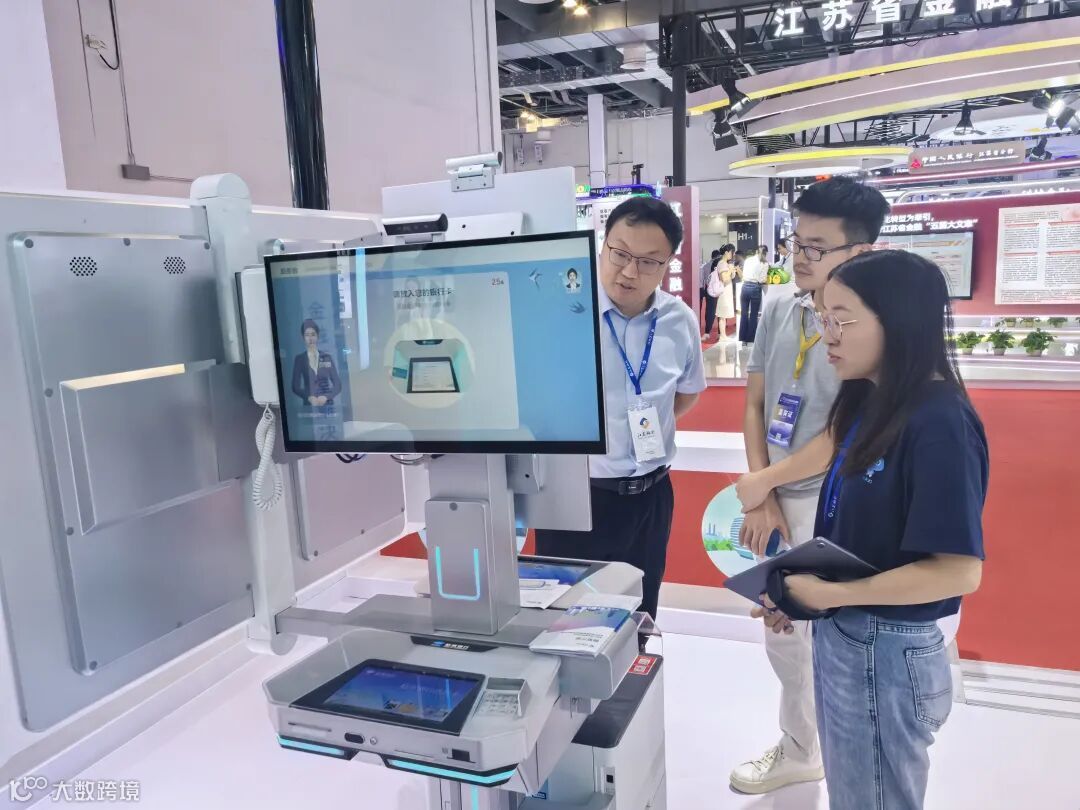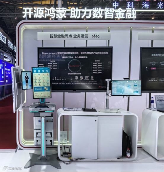 在本次展会杭州银行展台,证通协助杭州银行展示的智慧厅堂一体化解决方案成为了焦点。该方案是国内首个基于 OpenHarmony 标准系统面向金融行业、应用于银行大厅的自助产品,秉承硬件设计轻量化、多端研发一体化、服务模式立体化、运营管理数智化的理念,为营业厅堂有效赋能。其通过轻便化的设备形态、立体化的服务模式、智能化的交互设计,为客户提供更优质的服务体验。