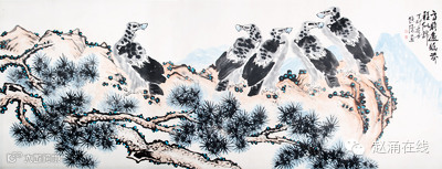 北京市文史馆馆员魏隐儒老先生的《高瞻远瞩》(藏品编号:159433012),丈二尺寸,尺幅巨大,气势雄浑,图绘苍鹰立于松石之上举目远眺,苍鹰形象生动,松石用笔老辣,颇有白石、苦禅遗味。