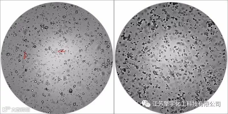 由于吡唑醚菌酯原药来源的差异,制备的制剂产品在热储转常温或者在热储过程中,非常容易出现膏化,制剂粘度慢慢变稠的情况。分析原因:主要是吡唑醚菌酯原药在高温环境中,因为不同晶型的原药熔点存在差异,出现了熔解和奥氏熟化的现象,在存储时出现了晶体长大的现象,直到整个体系出现假塑膏化的情况。这一现象在冷热交替储存的条件下尤其明显。需要我们筛选合适的分散剂,优异的吸附能力,抑制颗粒表面晶体长大与桥接现象的发生。