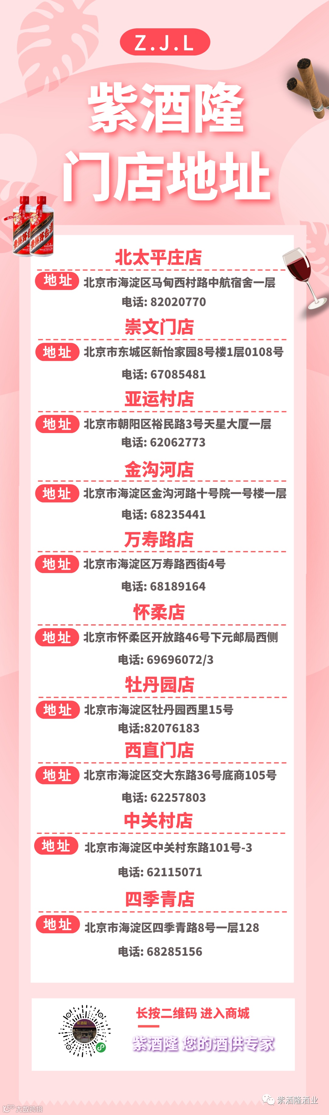 欢迎致电或前往紫酒隆门店预定喜宴用酒!
