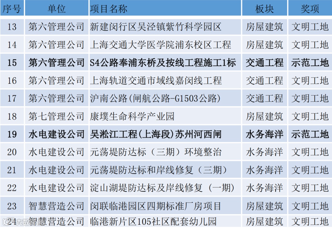 近期,上海市住房和城乡建设管理委员会公布了“2023年度上海市文明达标工地”名单,总承包部24个项目榜上有名,获评“2023年度上海市文明达标工地”。其中,上海浦东国际机场四期6号地块、S4公路奉浦东桥及按线工程施工1标、吴淞江工程(上海段)苏州河西闸3个项目荣获“2023年度上海市文明示范工地”。