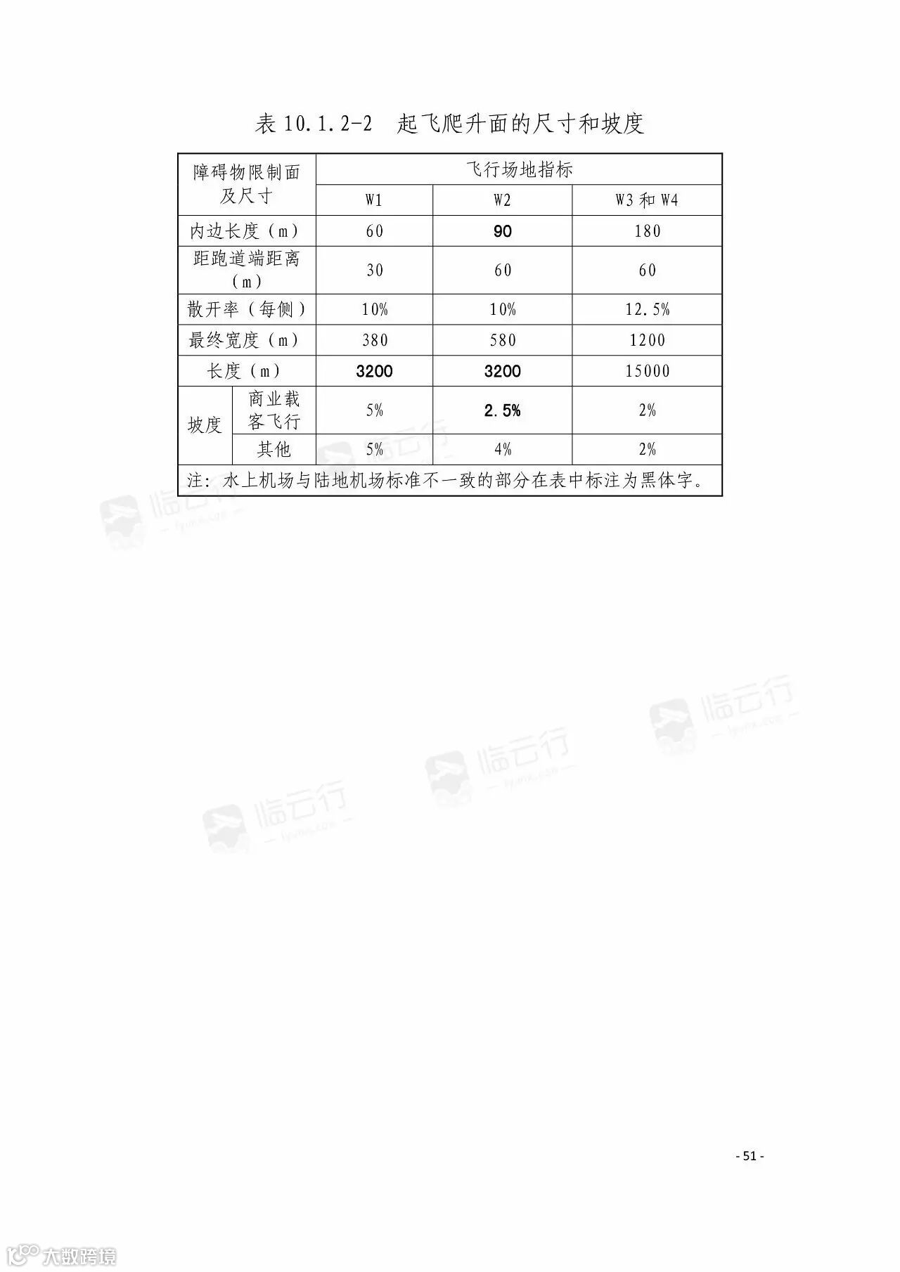 据了解,本技术要求主要适用于浮筒型水上飞机使用的水上机场,水陆两栖型飞机和船身型水上飞机使用的水上机场可参考使用。水上机场飞行场地指标按拟使用机型中最长基准飞行场地长度和最大起飞全重确定,划分为 W1、W2、W3、W4,两者中取其较高要求的指标。