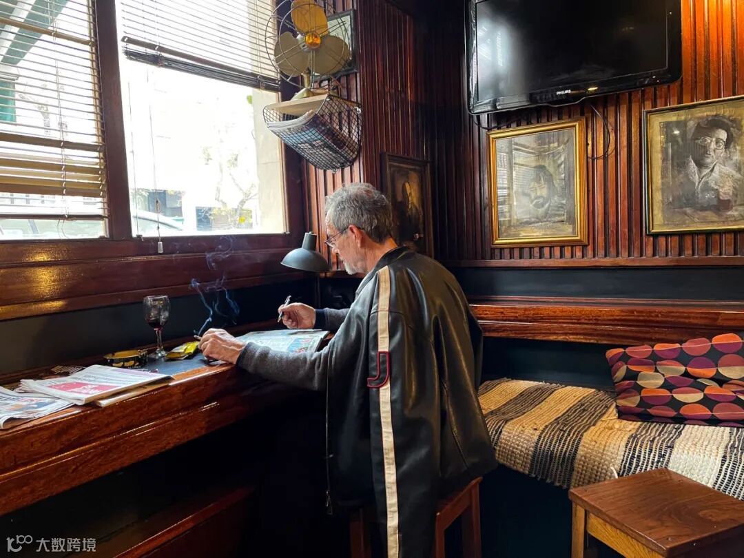 斯普利特酒吧内玩填字游戏的男人