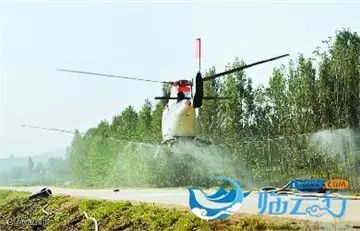 图:一架300C直升机在北京门头沟区执行飞机防治美国白蛾作业