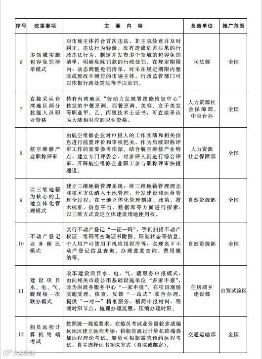 (一)在全国范围内复制推广的改革事项。