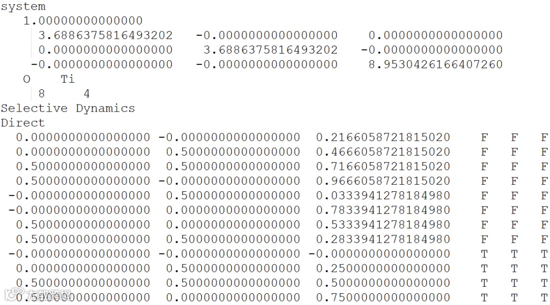 如果利用上述文件进行结构优化,此时Ti原子将被固定,而O原子正常弛豫。
