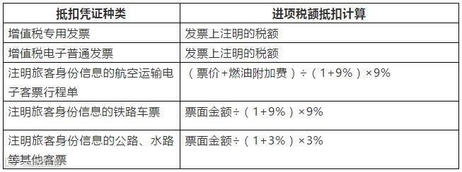 旅客运输抵扣凭证种类