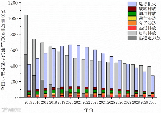 该发现促使我国国六标准加强了汽油车燃油蒸发的控制,以降低我国机动车蒸发排放VOCs量。如图2所示,预计从2019年开始我国机动车蒸发排放量超过尾气排放量,但随着国六标准的实施,蒸发排放量将于2020年达到峰值。然而,我国部分油品仍存在类似问题,如E10乙醇汽油的使用会增加21.28%-39.92%(95%置信区间)的蒸发排放量,未来需完善各类油品蒸发排放的管控标准。