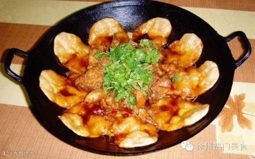 当一大锅地锅鸡被端上桌的时候,也就端上了徐州人的大气与豪放。好质地的铁锅,将鸡的鲜香味道淋漓尽致地烹制出来,与汤汁相融的鸡肉色泽鲜艳,辣味十足。围着锅身还贴着一圈薄薄的面饼,薄饼在鸡肉炖制的过程中慢慢熟透,不仅吸收了鸡肉的香气,还有汤汁的浓郁香味。用筷子将薄饼小心地从锅上扒下来,蘸着锅内的汤汁品味,那种鲜美纯香的特有味道会瞬间征服你的味觉。