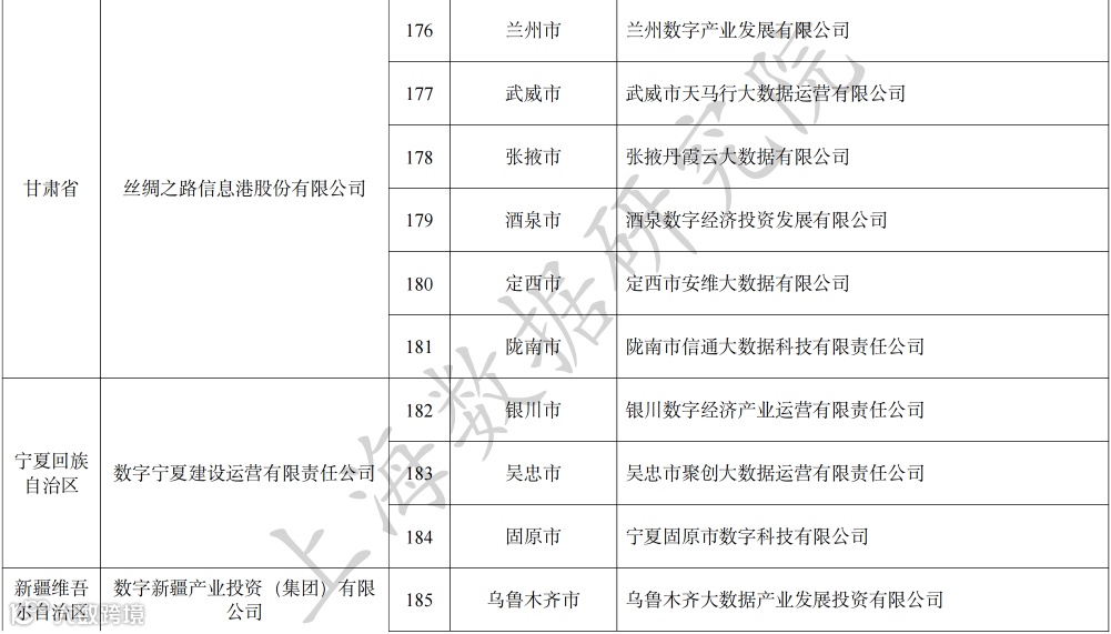 全国地方数据集团名单(不完全统计)