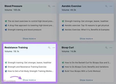 您可以点击每张卡片底部的Show more以了解有关特定子主题的更多信息。