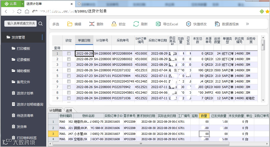 为提高仓库利用率、实现准时化供货,系统支持在WMS端制定采购交货计划,并通过SRM平台实时推送至供应商。