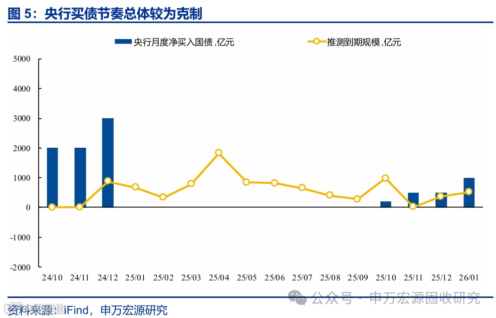 供给端来看,央行投放了较多相对中长期的流动性,银行存单净融资规模明显低于往年同期。实际上,自2025年四季度开始,央行流动性投放力度就明显增强,并且通过MLF、买断式逆回购等工具投放了较多相对中长期的流动性,并且恢复了常态化买债操作,对银行负债端补充效果也较为明显。从存单发行来看,年初以来银行存单净融资也明显低于往年同期水平。