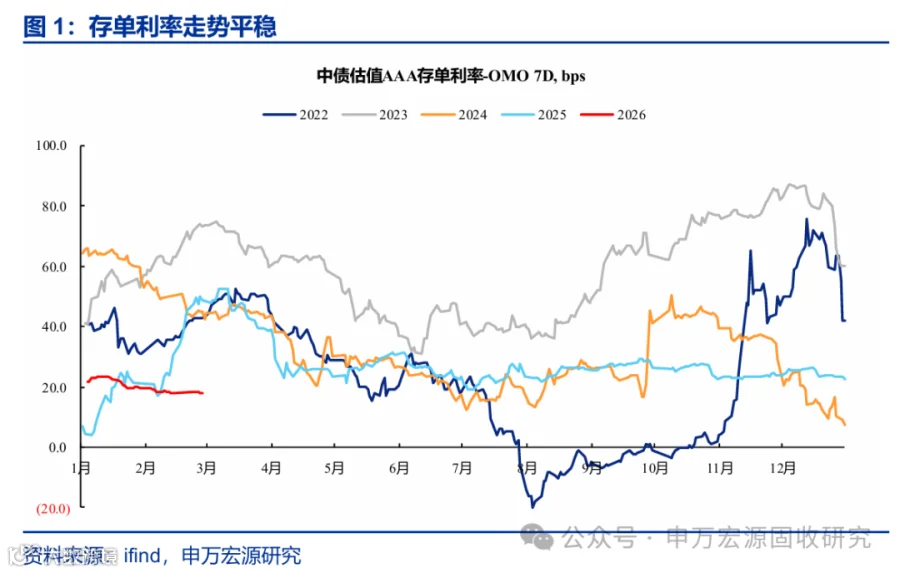2026年以来,尽管资金面面临了一些扰动,包括税期、跨节等因素,但存单利率走势总体平稳,从供给端和需求端来看,对存单利率都较为友好。
