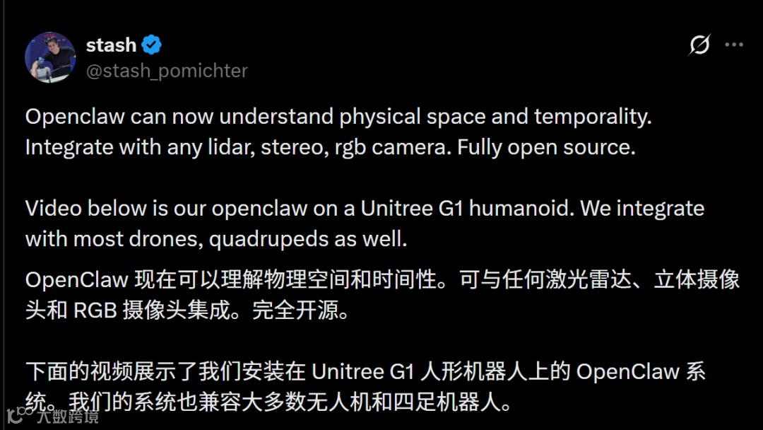 这一成果由开源项目OpenClaw实现,并获其核心开发者Peter Steinberger公开转发,被业界视为具身智能里程碑式突破:OpenClaw正式具备物理空间与时间感知能力。
