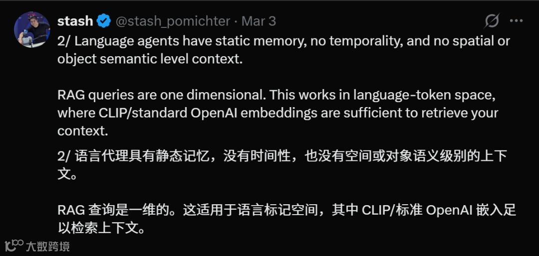 - 静态记忆局限:大语言模型(LLM)仅保留训练数据,无法记忆用户实时交互行为(如钥匙放置位置);