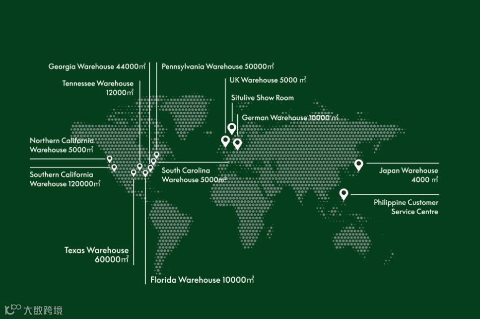 历经十余年深耕,乐歌已建成以北美为核心、辐射欧洲的全球海外仓网络。截至目前,共布局12 个公共(自营)海外仓,总面积达 35.2 万平方米,覆盖美国、英国、德国、菲律宾等主要经济体,为 Flexispot 提供稳定高效的全球订单履约保障。