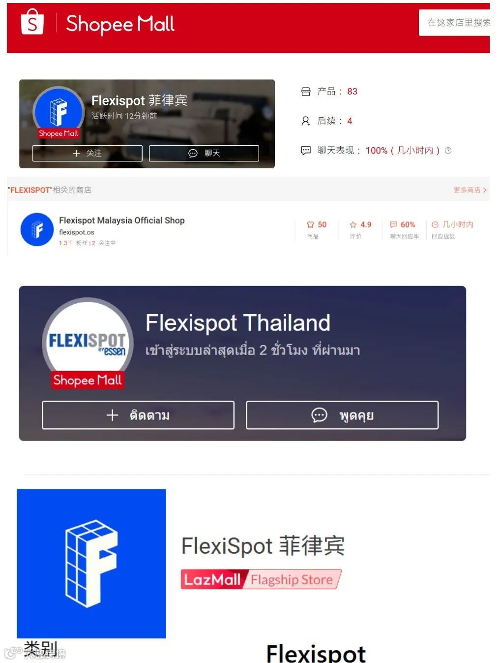 作为品牌出海的核心增量市场,东南亚成为 Flexispot 重点布局的新蓝海。目前,Flexispot 已入驻Shopee,Lazada等东南亚主流电商平台,开设品牌官方旗舰店,覆盖菲律宾、马来西亚、泰国等核心国家;同时依托 TikTok Shop、Facebook Shop 等社交渠道,打造内容种草 + 即时下单消费闭环,精准贴合东南亚用户边刷边买的习惯。